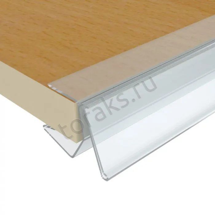 Фиксируется на торце деревянных и металлических полок толщиной 18–22 мм. Угол наклона ценника 25–30 град к торцу полки.